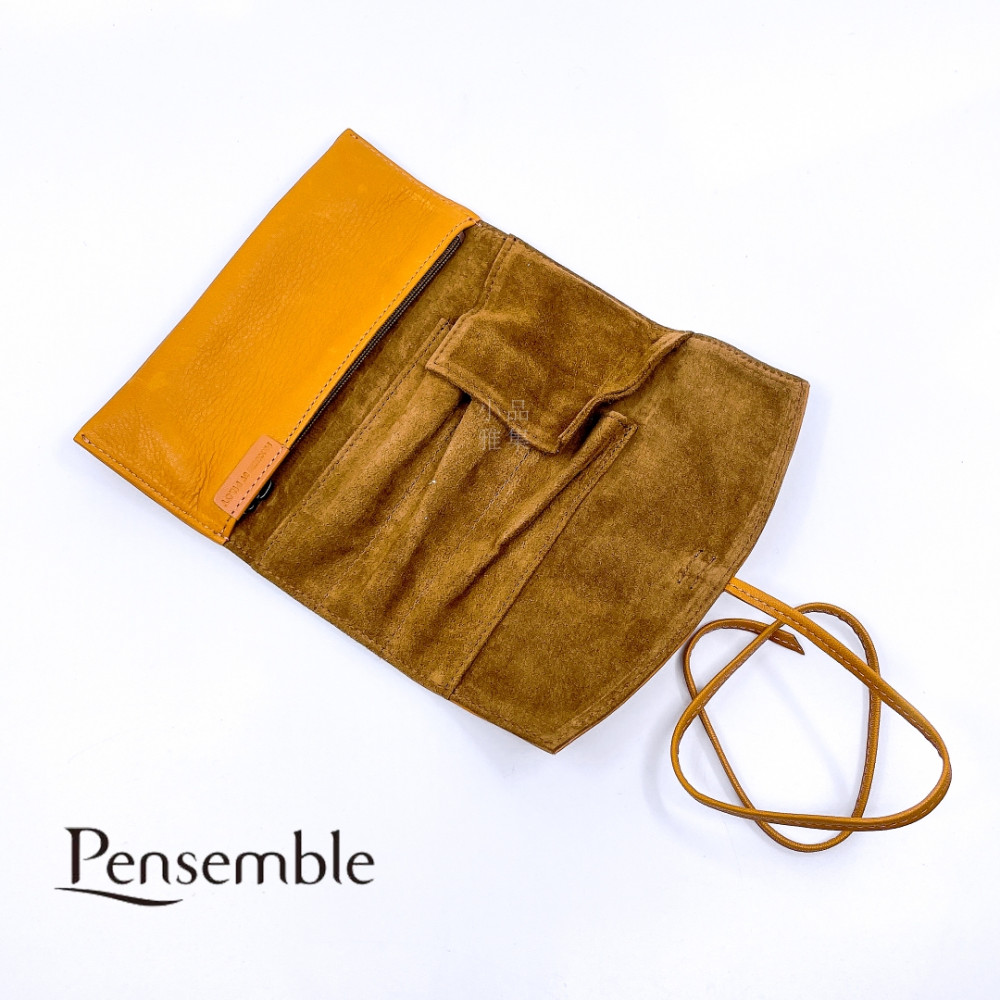 日本 PILOT 百樂 3支裝 附加拉鍊收納袋 真皮 筆袋(淺棕)