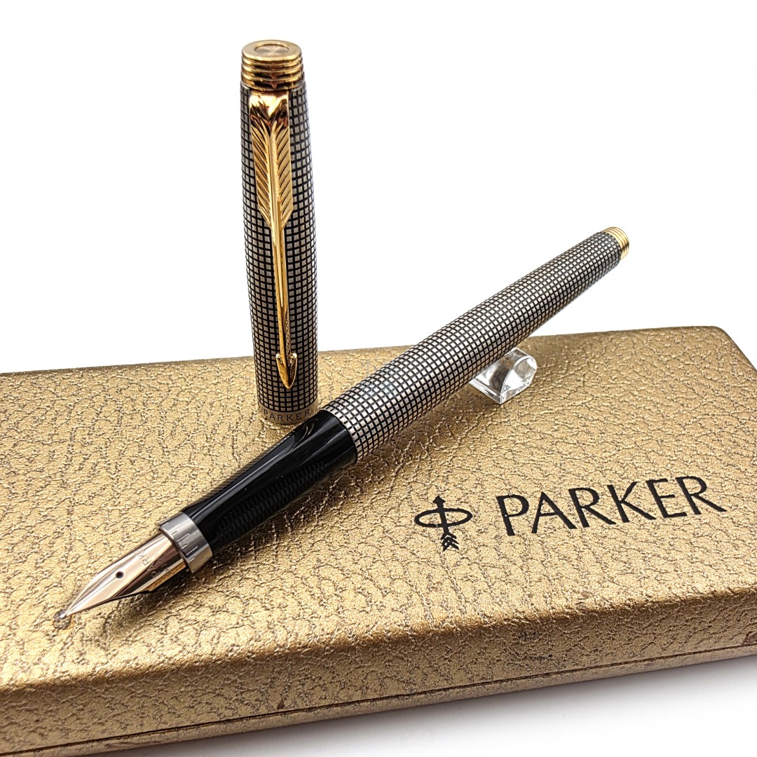 =庫存新品= 派克 Parker 75 美國製 純銀格紋 14K F尖 鋼筆 #PJ-60008