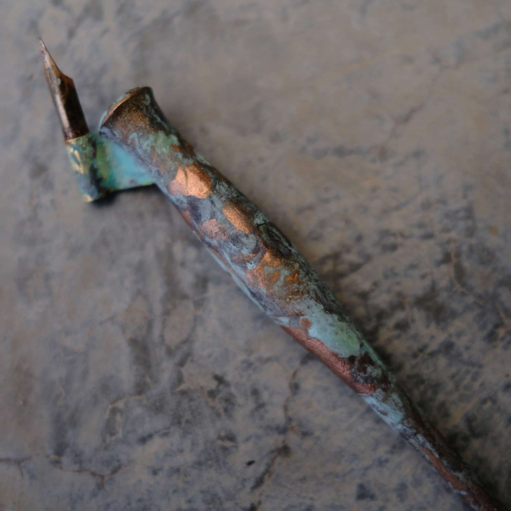 Zanerian Rust And Blue Patina Oblique Pen Holder