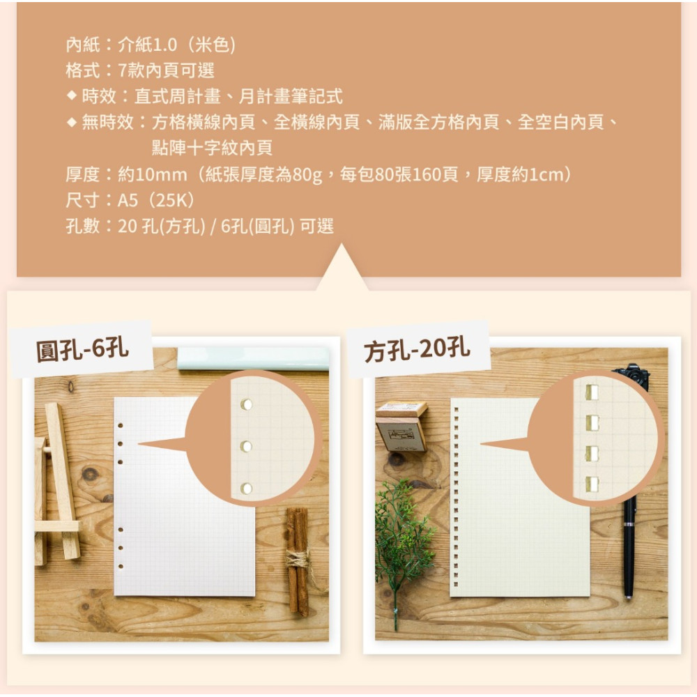 臺灣 Leatai 磊泰 介紙 鋼筆專用書寫紙 點陣十字紋內頁 / A5無時效 – 6孔活頁紙 補充包