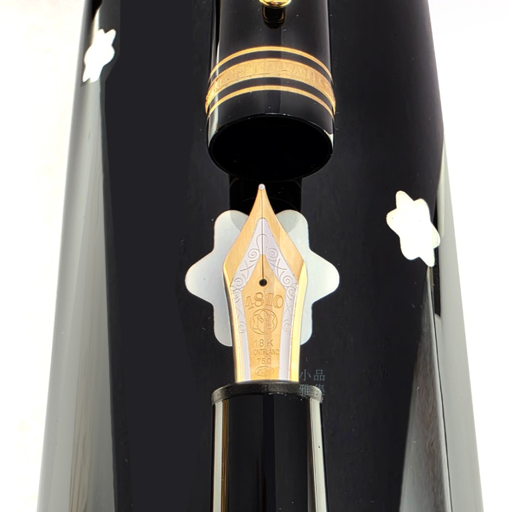 搭載萬寶龍最負盛名的 149 鋼筆,擁有厚實的書寫手感與磅礴氣場。筆尖配置為 18K (750) 雙色金尖,規格為極受歡迎的 F 尖 (Fine),能兼顧日常筆記與正式簽名。