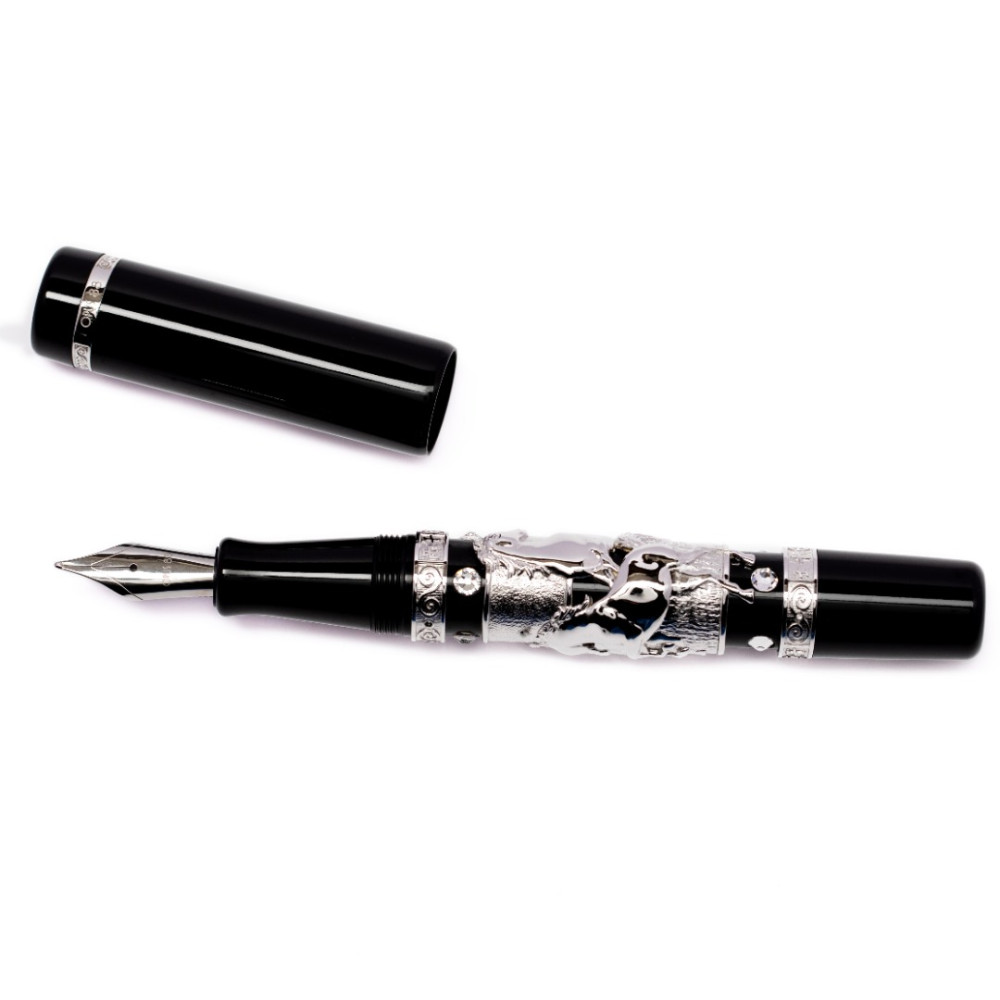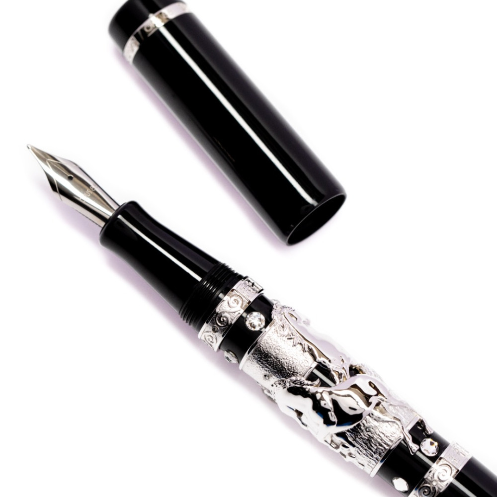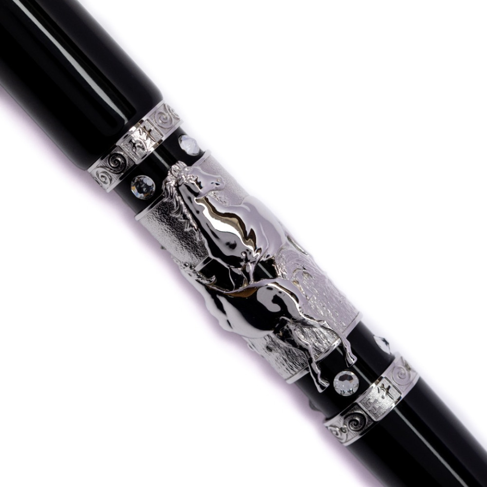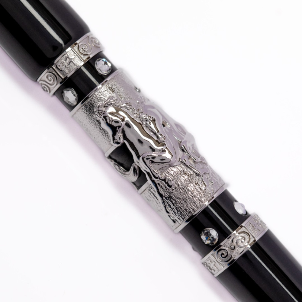 筆身核心鑲嵌極具份量的立體「駿馬」浮雕,