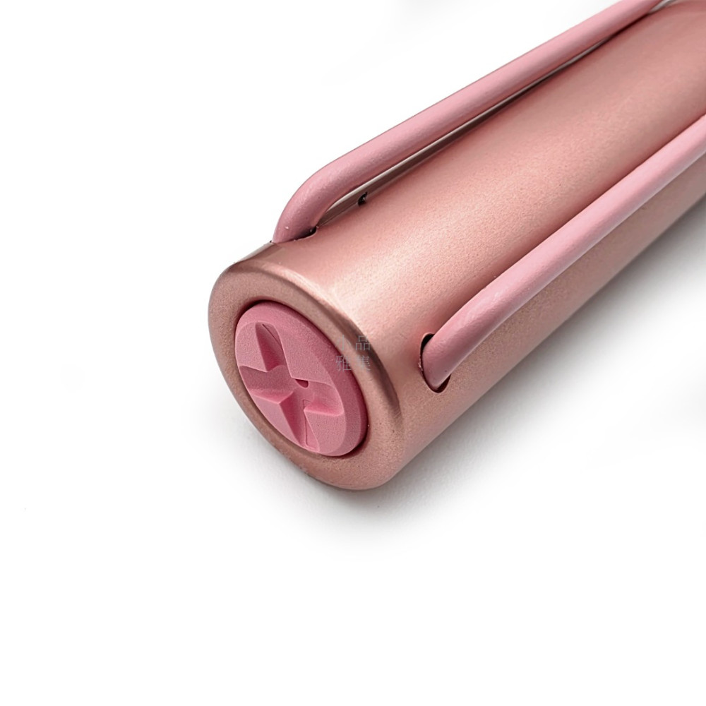 金屬筆身在光線下會透出很迷人的粉紅光影,搭配同色系的透明握位,整支筆看起來輕盈又充滿自信。